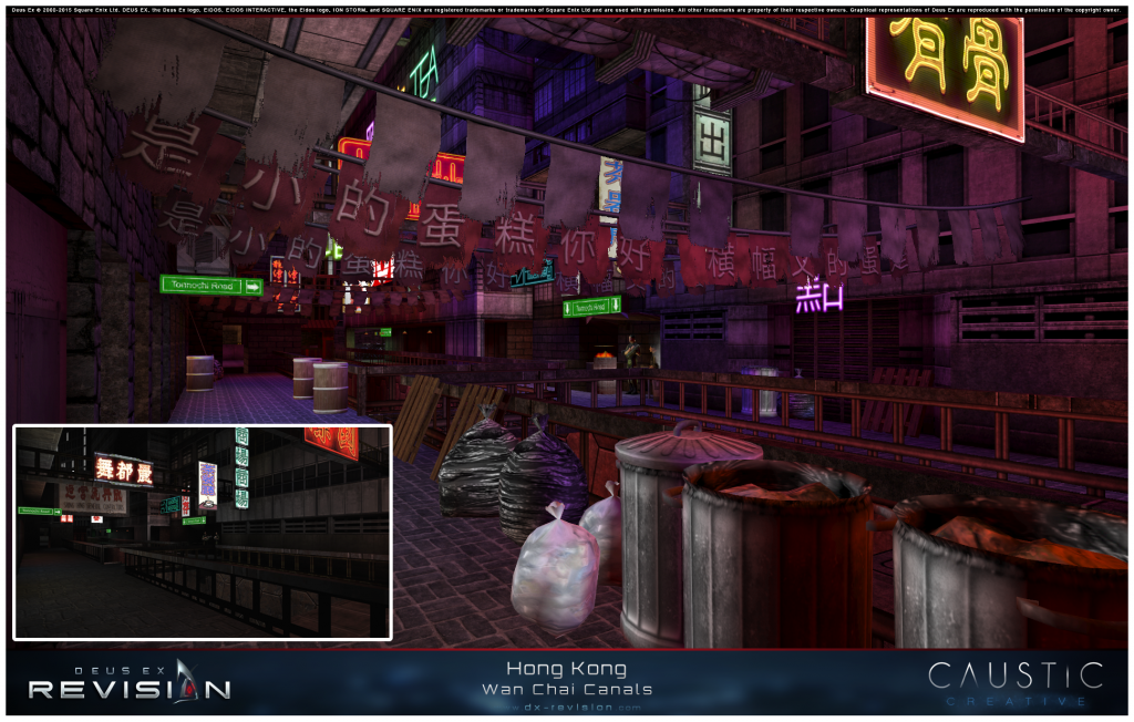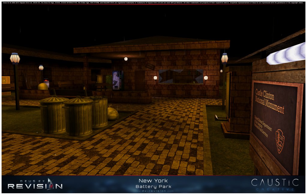 Revision bundles New Vision‘s high-definition textures for Deus Ex. At the beginning of the project, that was pretty much all we needed in terms of 2D graphics, but as Haris was building new, vaster and more detailed maps to navigate in, Revision needed to be enriched with our own textures and of all kinds of aesthetic enrichments in order for the environments to be filled with vibrance and visual complexity, to avoid larger spaces to feel empty.