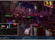 One of the common tropes of Cyberpunk fiction is the idea of vibrance above and grit below. In Revision, we created a huge number of ads, banners, posters and signs which decorate the buildings of New York, Paris and Hong Kong. These ads let us bring a great sense of color and vibrance to the cities, without making them feel crowded; the world can be lonely and dangerous at night, and we want to make sure that the sense of adventure is preserved.