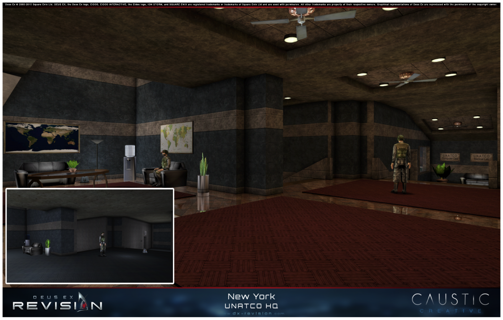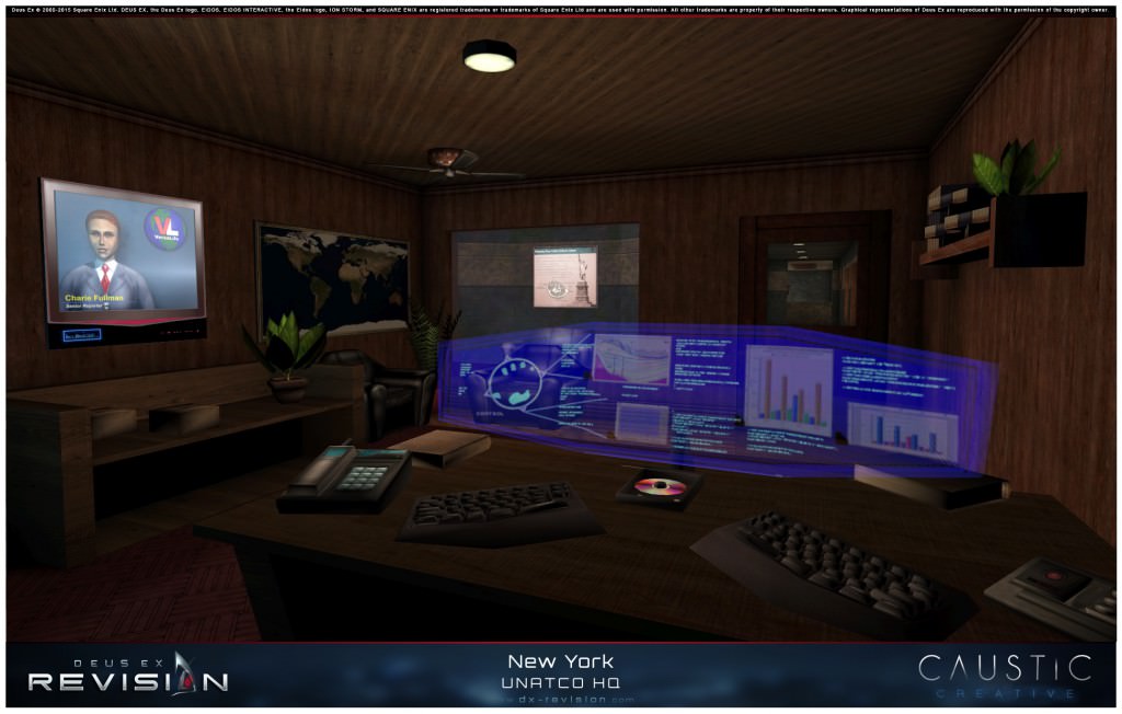 When Haris was in the process of overhauling Deus Ex’s maps’ geometry, game levels had become more complex and some of them had completely changed from head to toe. We needed to make sure that Davault pictures matched the new environments.